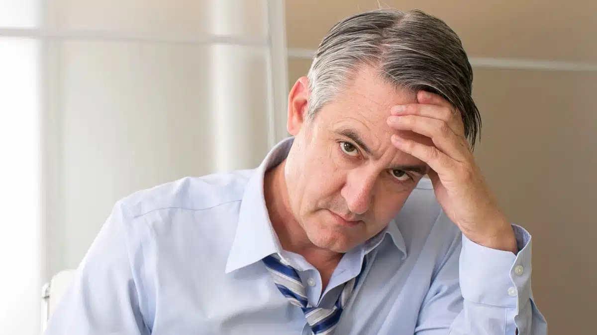 Senior man with hand on face