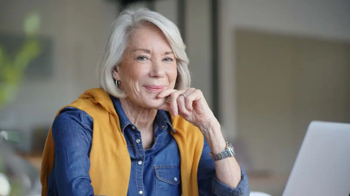 mature woman sitting with a laptop